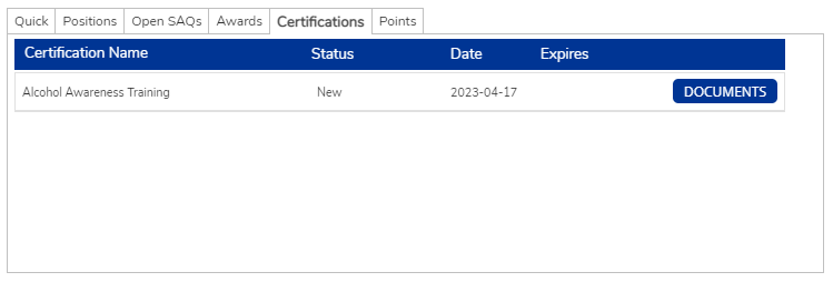 The system can track various certifications. You can see which certifications this employee carries.